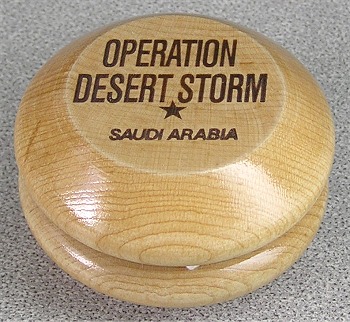 During the Gulf War, Hummingbird made a run of these to help the moral of our soldiers in the war. These were made and shipped overseas. Not available for sale, these are quite difficult to find in good condition. This one is mint, from the liquidation of the Hummingbird factory.