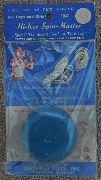 "The top of the world, for boys and girls, Hi-Ker Spin-Master, special translucent finish, a trick top, tested and approved for championship play. Use by world champions."