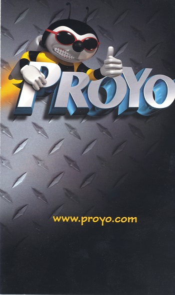 ProYo product brochure showcasing the Cold Fusion, Turbo Bumble Bee, Glow ProYo, Profire, Mood Yo, ProYo, and various parts and accessories.