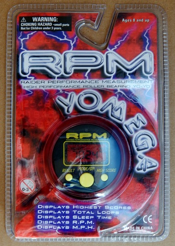 The RPM stands for Raider Performance Measurement. This is a high performance roller bearing yo-yo with an LCD window that displays highest scores, total loops, sleep time, r.p.m., and m.p.h.