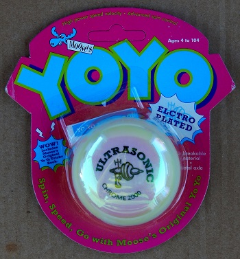 From series 1, a basic plastic yo-yo with an interesting white chrome finish. Similar in shape to the venerable Duncan Imperial.