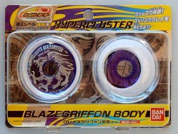 The BlazeGriffon body limited is wing-shaped and includes a four gram weight rings in the perimeter of each halve. You could use the body on most HyperCluster core parts for string tricks. What made it limited was the white body color and the fact that it was available only from authorized Bandai Hyper Yo-Yo dealers.