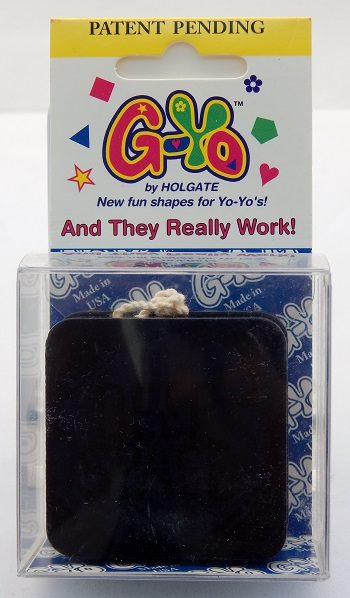 Another square-shaped yo-yo by Holgate but the edges have been rounded and smoothed. It has a flat-black logo on the sides. The logo is difficult to see unless you tip the yo-yo a certain way under bright light.