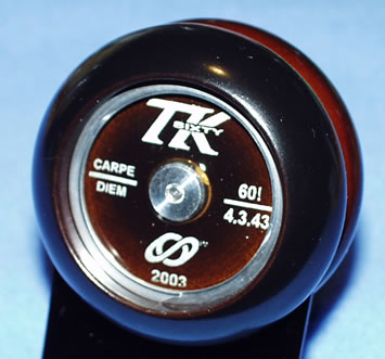 One of two that Tom had with him. Special stained over stain for a cool two color effect. The flash brings out the underlying redishness.