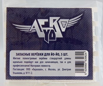 Aero-Yo spare polyester "ropes" for yo-yos. Package of five strings. Made in Moscow, Russia.