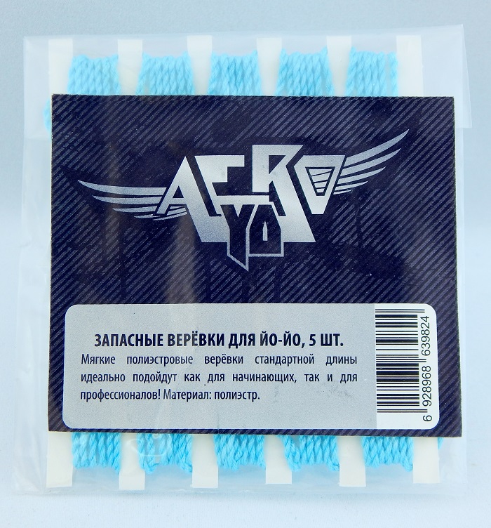 Aero-Yo spare polyester "ropes" for yo-yos. Package of five strings. Made in Moscow, Russia.
