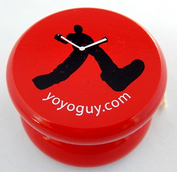 An overall red, fixed axle wooden yo-yo, with a black silhouette of a guy doing a trapeze trick using a white yo-yo with a white string. The entire visual effect has a subtle art deco appearance. Made exclusively for yoyoguy.com by BC/What's Next in the mid 2000s. Total production numbers are unknown. The yo-yo came out at an unfortunate time when players were moving completely away from wooden yo-yos. Instead, they were embracing the dead, unresponsive play that was found in newer plastic and metal yo-yos.