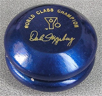 Grand Master Dale Myrberg had a number of signature yo-yos made for him by Hummingbird. This one is a standard Hummingbird in the traditional standard configuration. And the Genuine Hummingbird logo appears on the back.