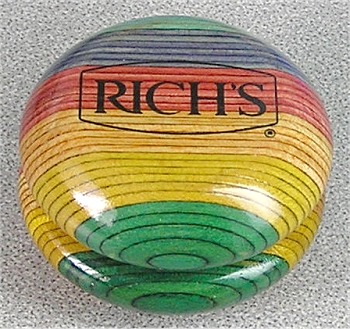 An advertising yo-yo made for Rich's by Hummingbird. Standard Rainbow laminated wood.