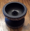 An interesting and innovative design from Auldey and sold by Hasbro. Considered a level 4 yo-yo (intended for experienced/advanced players of dead response yo-yos), the Metal Max Tornado used a size C, concave 10-ball bearing axle, and Auldey-branded response pads. The body is CNC metal with red and orange anodizing and allowed for faster, smoother tricks. The side of each halve is entirely covered by a clear, slightly concave plastic "cap". The cap functions like a super oversized Z-stack seen on some YoYoFactory models. In fact, the cap actually extends slightly over the rim which means you can balance the yo-yo on its edge, while it is still spinning. You can also hold the yo-yo by the caps using your index finger and thumb while it is still spinning to open up other possibilities of creative play. Basically, it was capable of spinning on multiple surfaces, including the palm of your hand.