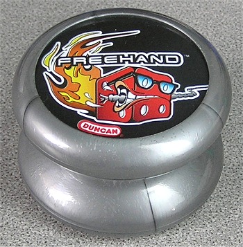 The FreeHand 2 was a re-design of the classic FreeHand, but using the Playmaxx molds acquired when the company was sold. A Pro-Yo GT mold was modified to create the yo-yo, which made it a popular choice with fans of Playmaxx and Proyo. Like a widened Bee GT, with Friction stickers for response.