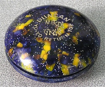 It's difficult to find a Mardi Gras with a perfect logo. Combination of pouring and the very hard solid plastic, made these difficult to stamp. The one pictured here has a very good logo for a Mardi Gras. |  |
