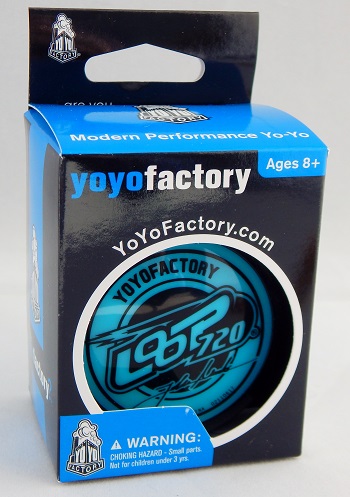 The Loop 720 uses a size K ball bearing axle and starburst response. It is a workhorse model in YoYoFactory's overall product line, being released in numerous special editions and colors while still using the basic design. Adding John Ando's name on the yo-yo is also a powerful marketing endorsement from a looping professional US National champion. The string length used on this model--and many other looping yo-yos--has shortened considerably over the years making them easier and faster to loop. The string length on a stock Loop 720 is between 70-75 cm (about 2 feet 3 inches to 2 feet 5 inches).