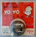 Grand Master Dennis McBride had a number of signature yo-yos made for him by Hummingbird. This is one of the more unusual, the Dennis McBride Trickster Concave. The same laminates available to Hummingbird were used, and McBride's custom logo was placed on one side, and the Genuine Hummingbird logo on the reverse. Beautiful Yo-Yos, and several color variations.