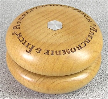 This was one of the custom orders made by Tom Kuhn Yo-Yos. Simple circular logo with "Abercrombie & Fitch" laser engraved into both sides. Features the patented replaceable axle system and hex nut take-apart design from Tom Kuhn.