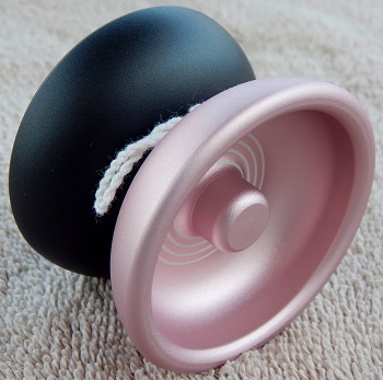 The Fluchs, with its original combination black and pink halves, was the freshman release from Anti-Yo based out of San Francisco, California. It was a high tech aluminum model, with a secret three step "Slip Matte" finishing process. At the time, nothing else on the yo-yo market looked or felt like it. "Fluchs" is a play on words for Flux, or Fluid in Motion. Made from 6061 aluminum and released near the end of 2004, it used a size C ball bearing axle that was cleaned and lightly oiled, and Friction Stickers for response.