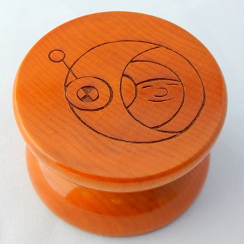 YoYoFactory's maple Legend Wing model with a laser engraved astronaut design on side A. Yo-yo was finished in cherry stain varnish. These were sold individually, without packaging.
