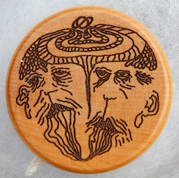 Both sides of the yo-yo are laser engraved with two different designs. The quirky artwork was created by John Baldwin Gourley (yes, the same individual who is in Portugal. The Man) and Austin Sellers. The visual artistic duo are better known by their alias The Fantastic The. From their archived webstore: "Who is The Fantastic The? The Fantastic The is a partnership between John and Austin. Close friends they realized that they had the ability to compliment each others creative visions. Sometimes TFT is a complete collaboration between John and Austin, sometimes it is primarily John, and other times it is primarily Austin."