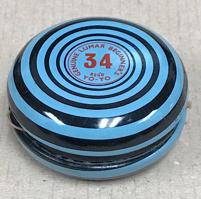 The 34 Beginners is one of the more common tin models produced by Lumar, but still less common than the 33. Lumar was a company in the UK that produced yo-yos since the 30's. Lumar produced many tin models, and later plastic.