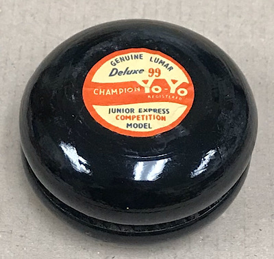 A complicated name for sure ... Genuine Lumar Deluxe 99 Champion Yo-Yo Junior Express Competion Model. Wow, what a mouthful. Very interesting wooden model, with a paper printed sticker for logo.