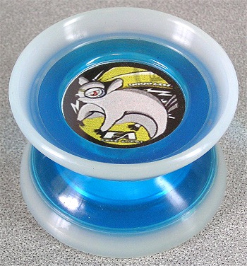 The Free Agent is an oversized yo-yo designed for offstring play. Rubberized clear rims on a blue body, with bearing axle and adjustable gap. Meant to replace the Aquarius, it was discontinued in the summer of 2004, because of problems with the rubberized rims separating from the body.