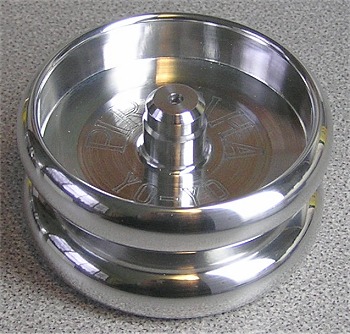 The Piranha was released towards the end of the late 90's yo-yo craze. Similar in design to the Tom Kuhn SB-2, the first Piranhas also included the same gap adjustment. To avoid legal complications, the gap adjust was changed to a gap adjustment knob on the reverse side, a very unique modification. The original Piranhas, made in the late 90s, were polished to a mirror finish. The 2004 re-release have a brushed finish.