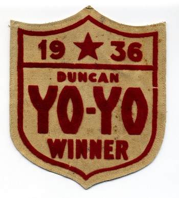 Note the unique shape of the letters "O" in "YO-YO." Their shape is identical to those used in this 1935 Duncan Winner patch.