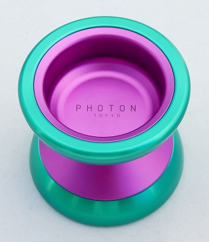 The TopYo Photon is an undersize bi-metal yo-yo with 7003 aluminum alloy body halves and 7075 aluminum alloy rims. Uses a size C string-centering ball bearing axle and the standard 19 mm slim response pads.