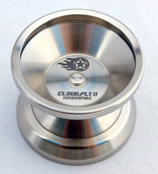 The Cloud Fly II -- made by YoYoEmpire -- is the second version of their undersized stainless steel yo-yo, but this time in a slight H-shape profile. The diameter is 3 mm larger than the HSpin x yoyoZeekio Little Evil 2, also a mini yo-yo. Uses a size D Konkave ball bearing axle and silicone pads for response.