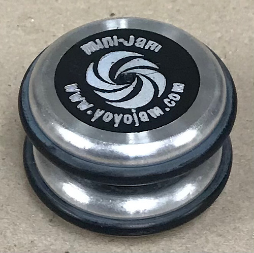 The Mini Jam or Mini-Jam was the first undersized model by yoyojam in the late 1990's. A very early model, it had a lot of features common in the older jams. Small bearing axle with adjustable gap, composite construction, o-rings around the halves of the body for ground impacts. Also, no response system other than molding holes around the axle that acted as a weak starburst response. This one was a signature of Philip Travalent, at the time a boy that helped in the testing of the Mini.