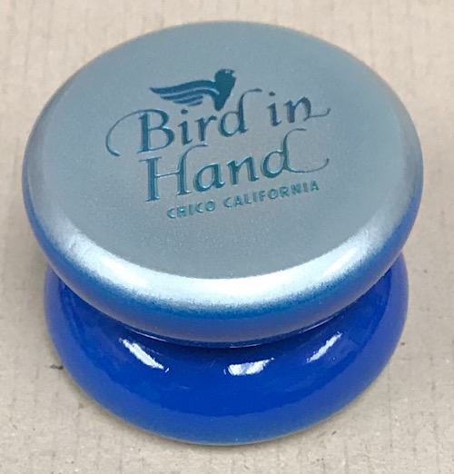 This all wood yo-yo was made by BC/What's Next and sold at the National Museum store in Chico California. One side of the yo-yo was stamped with the "Bird in Hand" store logo, while the other side was stamped with "I wound up in Chico". The National Museum was site of the National Contest each year, until that changed just recently.