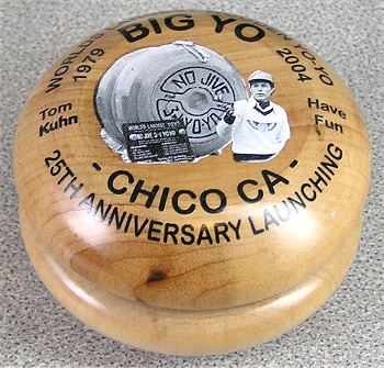 The special No Jive 3 in 1 was released to commemorate the 25th Anniversary of Tom Kuhn's Big Yo, the World's largest yo-yo. Usually displayed at the Chico Museum, Big Yo was again launched by crane at the 2004 Nationals.