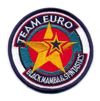 A beautiful six-color yo-yo patch from the late 1990s. The story and history of this patch is not clear. A Google search did not reveal any information about who Team Euro was, why the patch was made, or by whom it was made. The text on the patch alone suggests that it may have been a competitive (European?) yo-yo team sponsored by Abbe Toys, an Australian-based company that produced the Black Mamba line of yo-yos and, by Spintastics, a USA-based yo-yo maker.