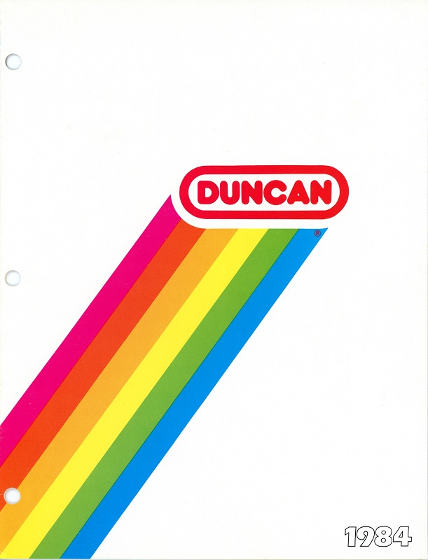 The twelve page Duncan 1984 product catalog. Most people associate Duncan with yo-yos, but Duncan also made a variety of plastic wheeled toys to compete with the likes of Tonka and Buddy L. The catalog showcased the yo-yo product line on the last two pages.