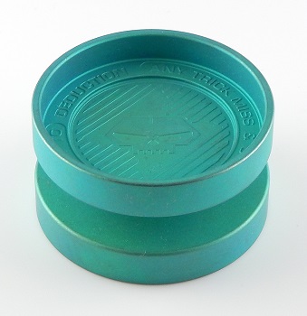 The R2FG (Rotation to Fight Gravity) Deduction was a titanium slimline yo-yo with a profile design in a similar vein to Huatian's Rotor and C3YoYoDesign's BTH.