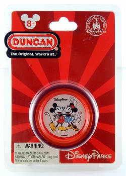 Disney Theme Park Merchandise from 2014. Duncan Butterfly yo-yo licensed exclusively by Disney for sale at Disney Theme Parks. Yo-yo has a plastic body and fixed, steel axle. Sidecap A features full-bodied Mickey and Minnie Mouse characters; sidecap B features the Genuine Duncan Yo-Yo logo with the big G in genuine.