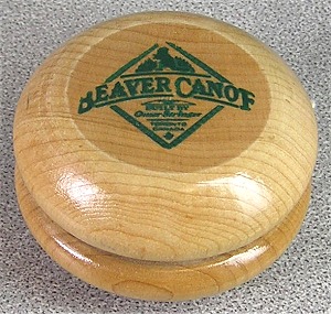 A custom yo-yo made for Beaver Canoe of Toronto, Canada. An example of Hummingbird's advertising yo-yos, rescued from the liquidation of the Hummingbird factory.