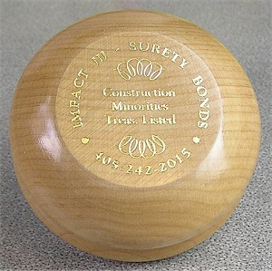 A custom yo-yo made for Impact III Surety bonds. All sorts of companies, large and small, placed orders with Hummingbird for custom logo yo-yos.