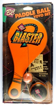 The BC Paddle Ball and Yo-Yo Set from 1999. "Double the fun with this quality hardwood paddle ball set attractively packaged with a precision balanced