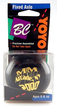 The BC/What's Next MM, Arcade, NY 2000 yo-yo with MM serving as the year 2000 in Roman numerals. The yo-yo body was the company's three-piece, maple, fixed axle Phantom - No. 23. The bottom of the yo-yo's display box has a "Phantom - No. 23" sticker under the "Limited Edition, Millennium Celebration, Arcade, New York, May 27, 2000" sticker.