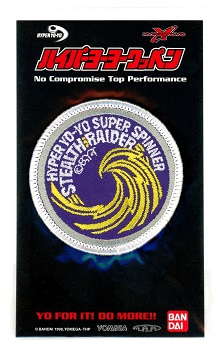 Made by the Apparel Division of Bandai Co. Ltd. in 1998, the four-colored Yomega Stealth Raider patch showcased one of more than 20 different Hyper Yo-Yo-themed iron-on patches that were sold at Bandai trick certification centers inside retail stores. It's possible that these patches were also used as prizes in yo-yo contests. Sometimes the patch highlighted a particular yo-yo model—such as the one seen in this exhibit—that was licensed by Bandai from either Yomega or Playmaxx of the U.S.A.