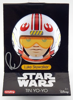 Schylling's lithographed tin Star Wars yo-yo featuring the stylized head of Luke Skywalker on side A, and Darth Vader on side B.