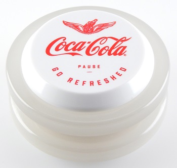 This yo-yo pays tribute to the classic design of the original Russell Coca-Cola yo-yos, with the same iconic bulging sides. However, unlike the vintage fixed-axle models, this Coca-Cola model could be unscrewed, letting you untangle knots or replace the ball bearing axle as needed. For those who wanted more responsive play like original yo-yos, looping oil could be applied to the bearing. Officially licensed, this model gave you nostalgic appeal with updated, modern performance.