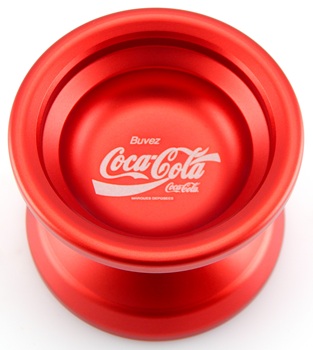 From yoyosam.com: "Coca-Cola Yo-Yo TYPE X (Aluminum) with French "Drink" (Buvez) logo. This collaboration between the Japanese brand Freshthings and the iconic Coca-Cola company features the Coca-Cola logo engraving on a red anodized aluminum body. The yo-yo comes in a Coca-Cola themed box and is an officially licensed product. The Coca-Cola Type X yo-yo comes responsive with a thin size C bearing for a classic (and original) up and down yo-yo experience that any person can enjoy, even at novice levels. It is a great choice for Coca-Cola and yo-yo collectors alike."
