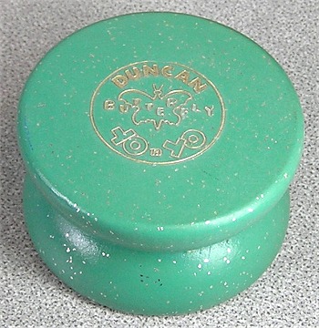 The wooden concave was one of the most popular models towards the end of the old Duncan. Most concaves were painted with a glitter paint like this one. The popularity today of concaves, over standard shapes is a new phenomen. In the old days, the standard shape tournament models were the major sellers for Duncan.