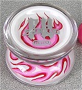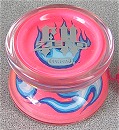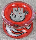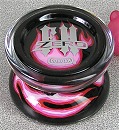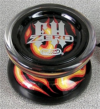 Mr. Yodel, John Higby, is well known for his yo-yo art work. This is a Duncan FreeHand Zero, painted on the inside surfaces with a Flame design. The "Flamed" designs are one of his most popular type of his painted yo-yos. Included with this is a matching, dyed Character counterweight and string. A totally "Yodel-ized" FreeHand Zero, and a magnificent one too. Gorgeous!