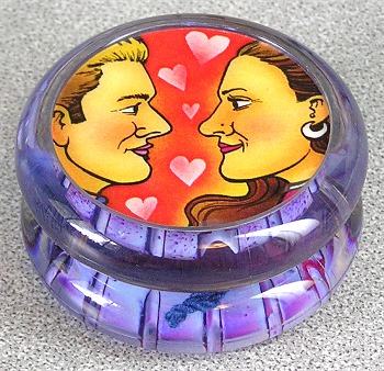 This is painted and "yodelized" Duncan Proyo with wooden axle and weight distribution. Released in 2004. This is a very special Yodel, as it commemorates John and Rebecca's wedding, on September 19, 2004.