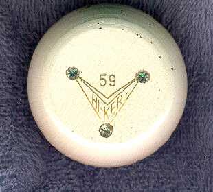 Rhinestones always added to the popularity of a yo-yo. The Hi-Ker 59 featured only 3 stones, and they were not even centered on the yo-yo. The stones were positioned at the points of a very unusual logo design. The same slightly oversized blacks used by the original Hi-Ker/Cheerio.