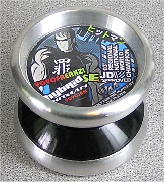 The Logo Side View shows two variations of the logo design. Although SE stands for special edition, this is just like other Hybrid Hitmans. Just a custom logo cap with "SE" and a link to an online store for advertising. The black pictured here was released in May of 2005, and has the "SE" logo, although these were sold to all vendors selling YoYoJam products.