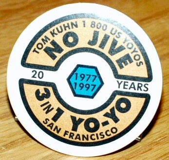 This pinback button was made to celebrate the 20th anniversary of Tom Kuhn making his first No Jive.